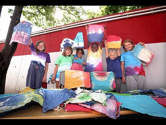 Ob man Elias (11), Mailo (8) oder Carina (9 Jahre) fragt: T-Shirts batiken war der Hit!