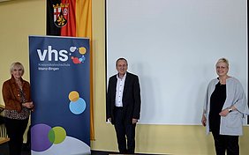 Schrittweise können die Weiterbildungseinrichtungen in Rheinland-Pfalz wieder öffnen. Die noch immer anhaltende Corona-Pandemie erfordert dabei ein Umdenken bei Bildungsangeboten und Kursstrukturen. Weiterbildungsminister Konrad Wolf besuchte die Kreisvolkshochschule (KVHS) Mainz-Bingen und informierte sich bei der Vorsitzenden der KVHS, Landrätin Dorothea Schäfer, und der Leiterin der KVHS, Monika Nickels, über die Anforderungen und die Umsetzung des Unterrichts.